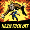 Description: Captain America punching Hitler, with the text "Nazis Fuck Off" underneath