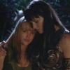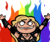 Description: A cartoon of Callisto from "Xena: Warrior Princess" in the style of the famous "Elmo fire" gif
